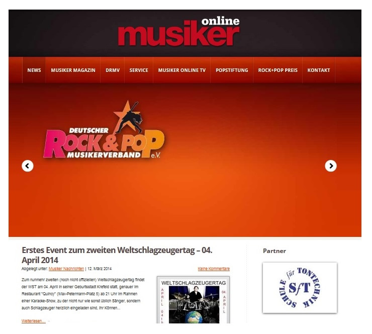 Deutscher Rock- und Popmusikerverband DRMV auf der website des Magazins "Musiker und tagelang auf der Titelseite der Hauptseite